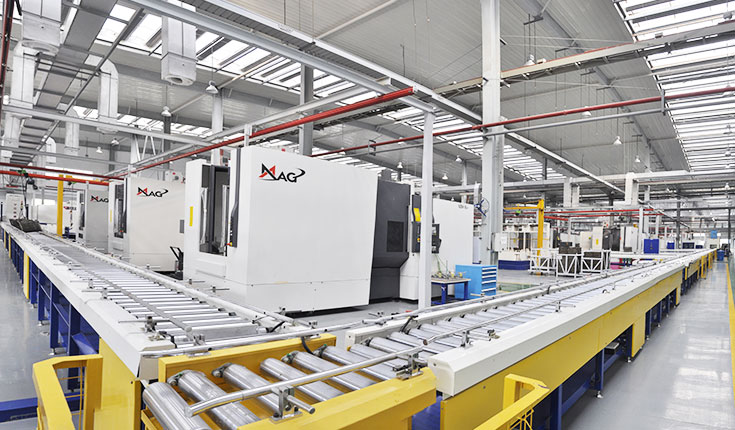 熱后齒軸加工自動(dòng)線,智能化機(jī)器人連線生產(chǎn)引進(jìn)了歐洲系列先進(jìn)設(shè)備,實(shí)施在線檢測(cè),大幅度保障產(chǎn)品質(zhì)量的提高。其中近端的熱后二軸加工自動(dòng)線,采用桁架機(jī)器人連線生產(chǎn),實(shí)現(xiàn)智能化、少人化加工;自動(dòng)線和物流線無(wú)縫銜接,實(shí)現(xiàn)自動(dòng)物流。熱后一軸加工流水線,可實(shí)現(xiàn)內(nèi)錐面凸面加工;采用內(nèi)部單件流,實(shí)現(xiàn)多品種混線生產(chǎn)。熱后齒輪加工流水線,可實(shí)現(xiàn)齒輪曲面扭曲修行降低噪音,高效加工4級(jí)精度齒輪加工;采用內(nèi)部單件流,實(shí)現(xiàn)多品種混線生產(chǎn)。
