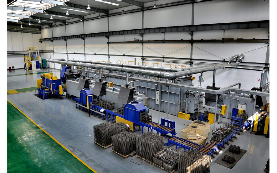 熱處理加工流水線,連線自動(dòng)化生產(chǎn)由兩條連續(xù)爐、三臺(tái)多用爐組成,加上先進(jìn)的應(yīng)力噴丸機(jī)和一套完整的滲碳淬火檢驗(yàn)設(shè)備,使得產(chǎn)品質(zhì)量得以保障。采用連線自動(dòng)化生產(chǎn),實(shí)現(xiàn)少人化加工。采用的“強(qiáng)化噴丸”技術(shù),針對(duì)產(chǎn)品需要強(qiáng)化部位集中噴丸加工,實(shí)現(xiàn)產(chǎn)品局部提高強(qiáng)度,節(jié)約能源并提高產(chǎn)品質(zhì)量。